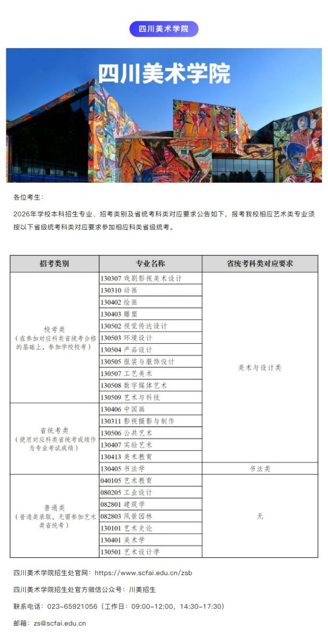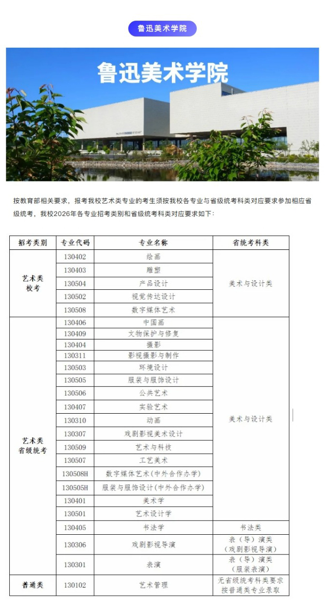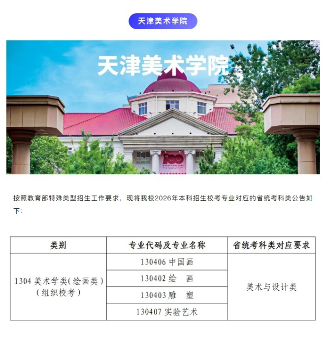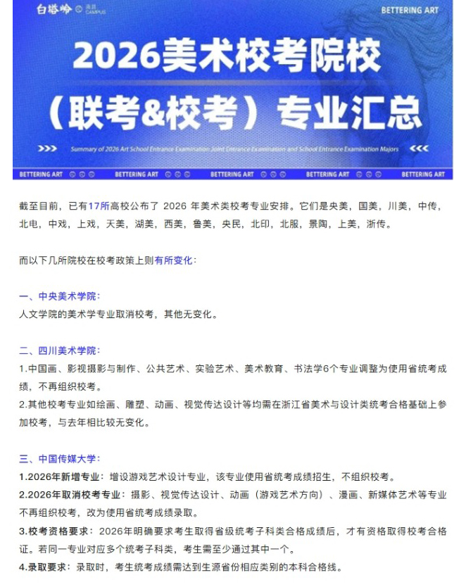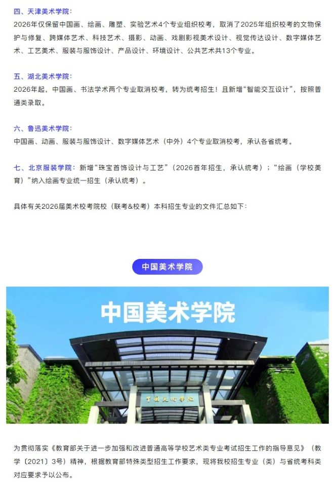 艺考资讯丨2026届美术校考院校(联考&校考)本科招生专业汇总