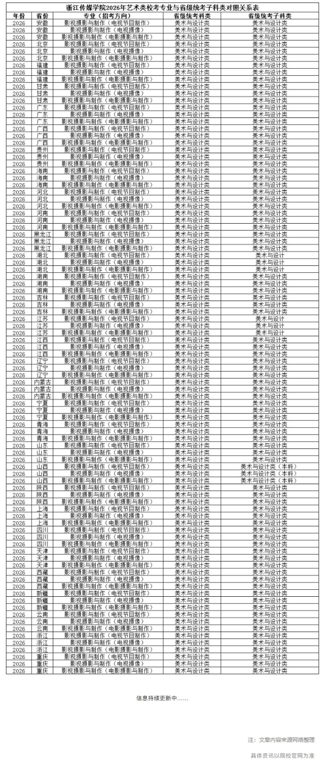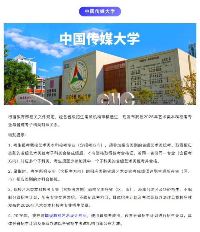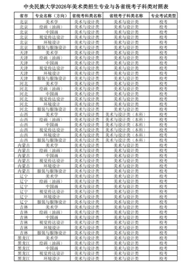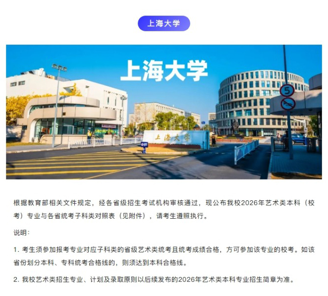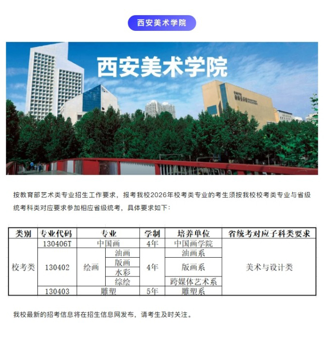 艺考资讯丨2026届美术校考院校(联考&校考)本科招生专业汇总